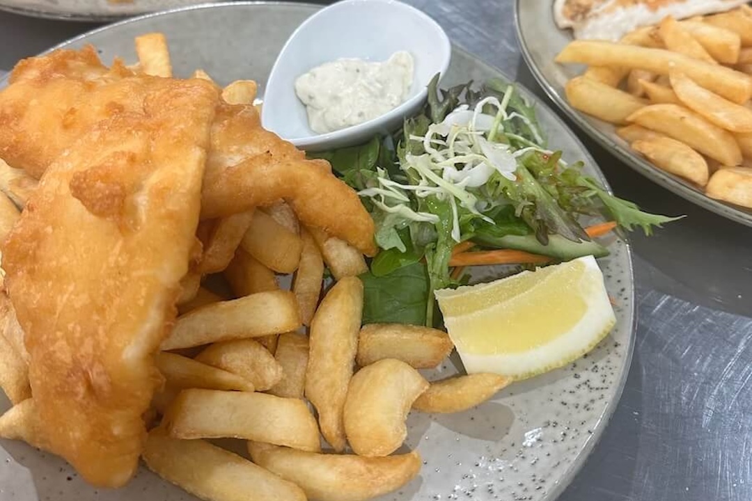 Freshly cooked fish and chips...washed down with a cold beer or chilled local white wine.
